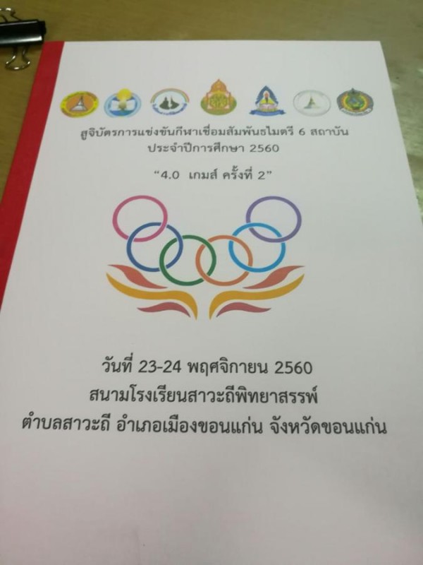 โรงเรียนสาวะถีพิทยาสรรพ์ กำหนดจัดกีฬาเชื่อมความสัมพันธไมตรี 4.0 เชื่อมสัมพันธไมตรี 6 สถาบัน ในวันที่ 23-24 พ.ย.2560 ณ สนามกีฬาโรงเรียน